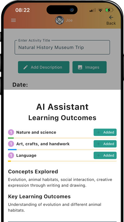 Capture the moment, then let the AI assistant help you turn it into a clear learning record you can actually use.